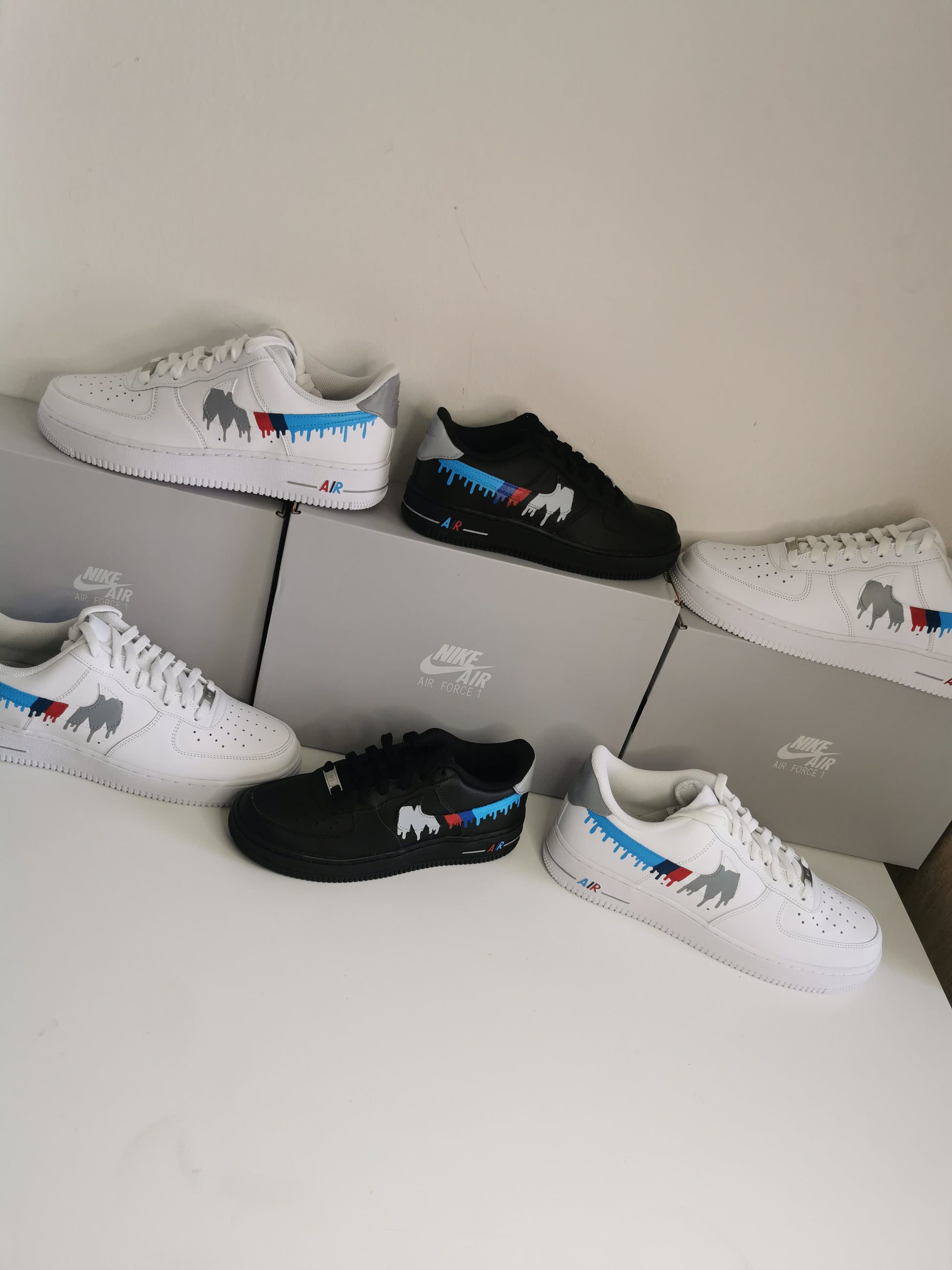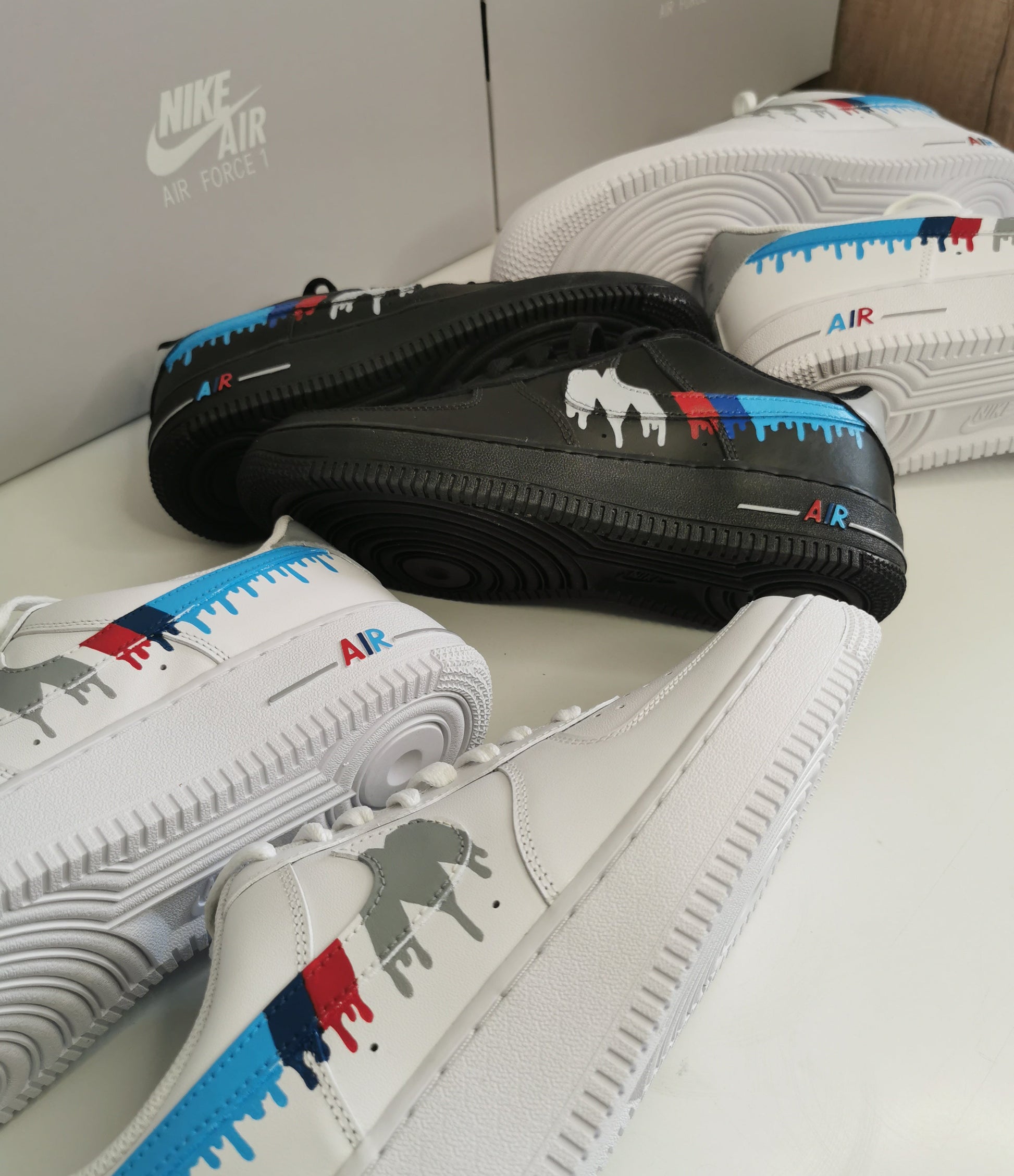Experience ultimate style with our hand-painted BMW M Custom Sneakers, based on the iconic Nike Air Force 1.Each pair is a unique piece of art, carefully and precisely 100% hand-painted.