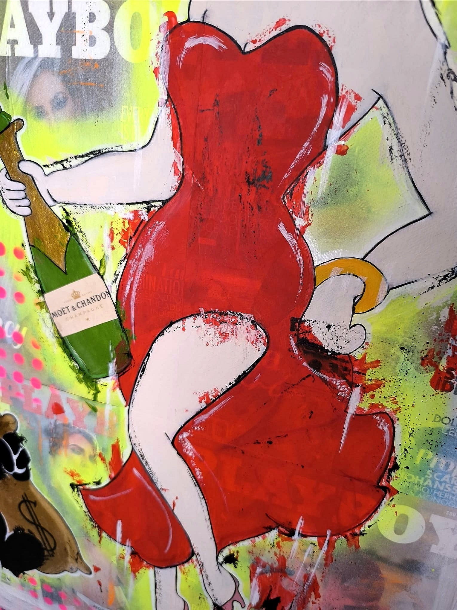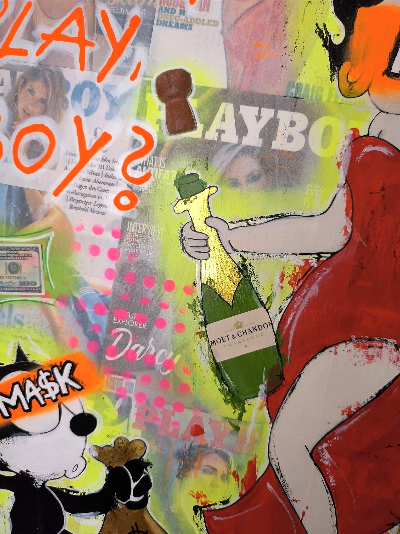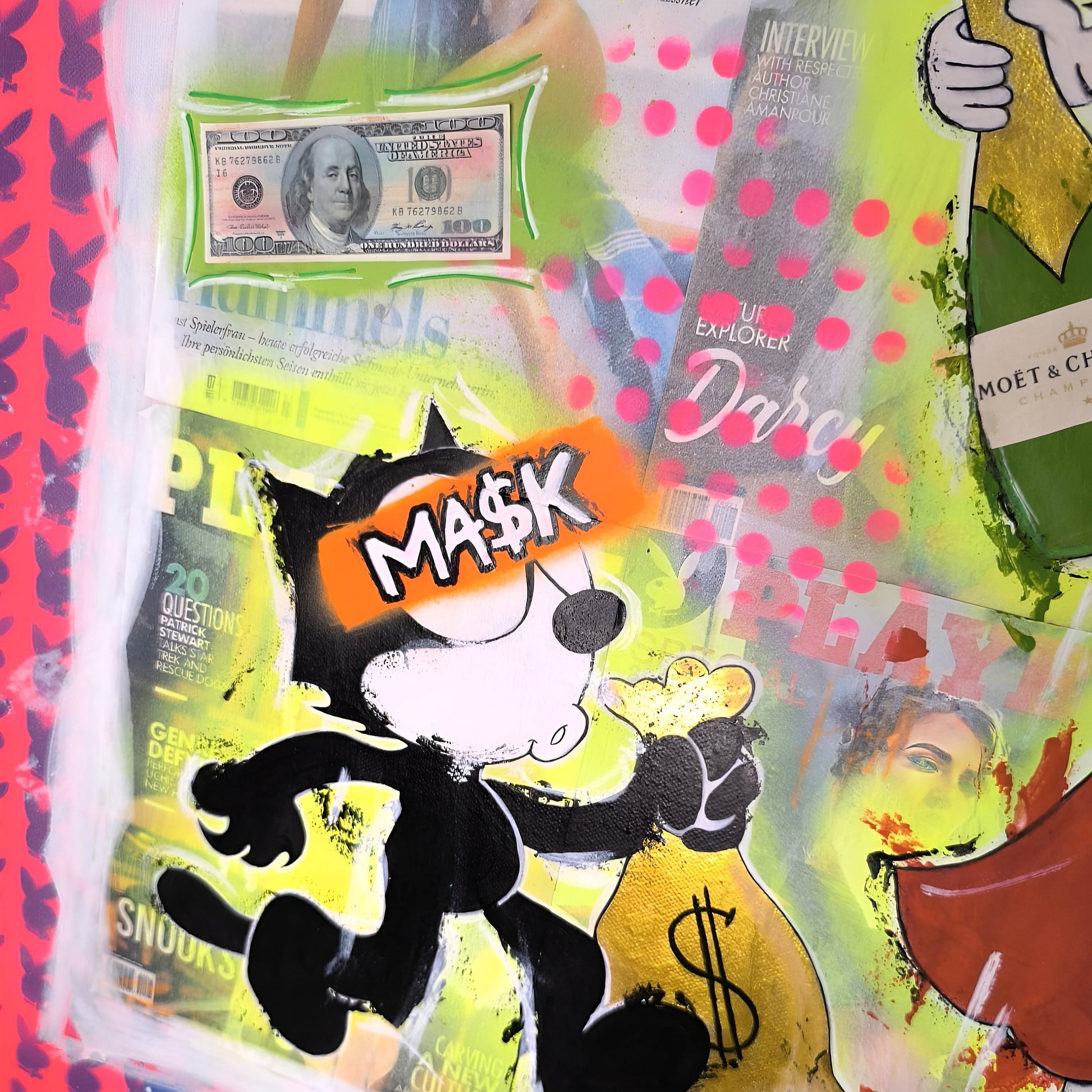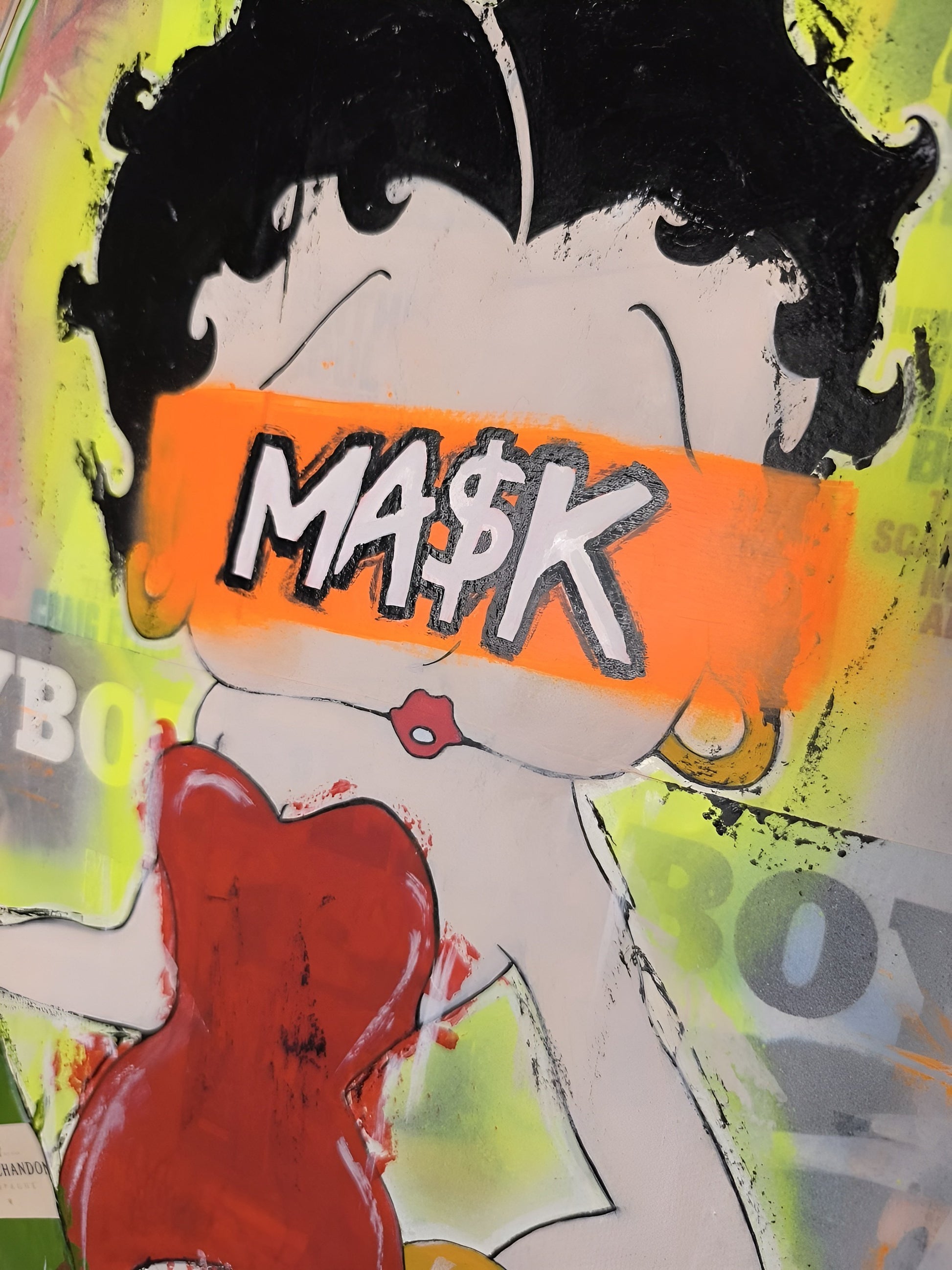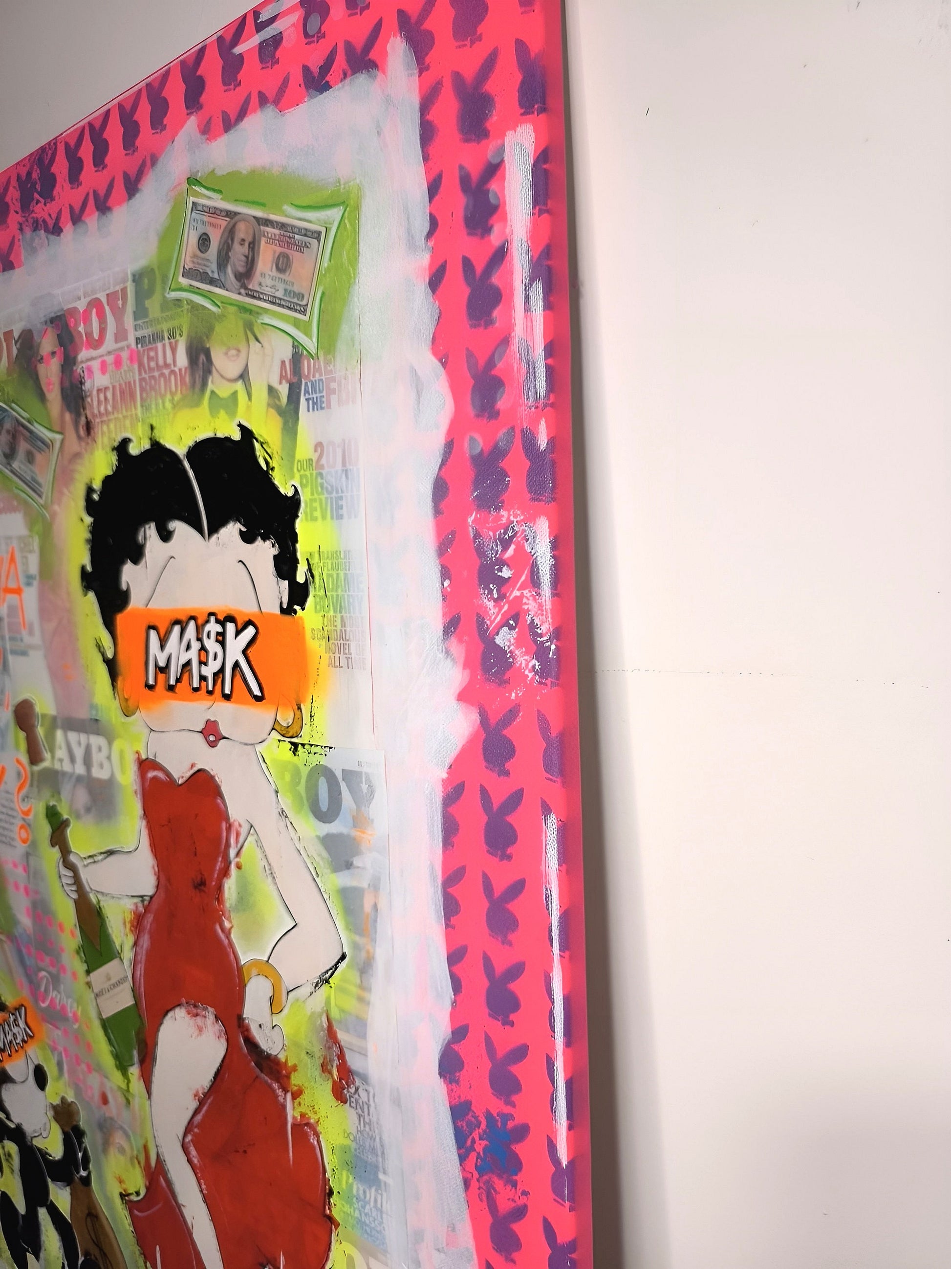New Artwork from the series "Who Is MA$K" Edition 1 | Number 6 of 10 | 90x70x2cm | Acryl on Canvas | Playboy Cover | Betty Boop , Felix the Cat | Original